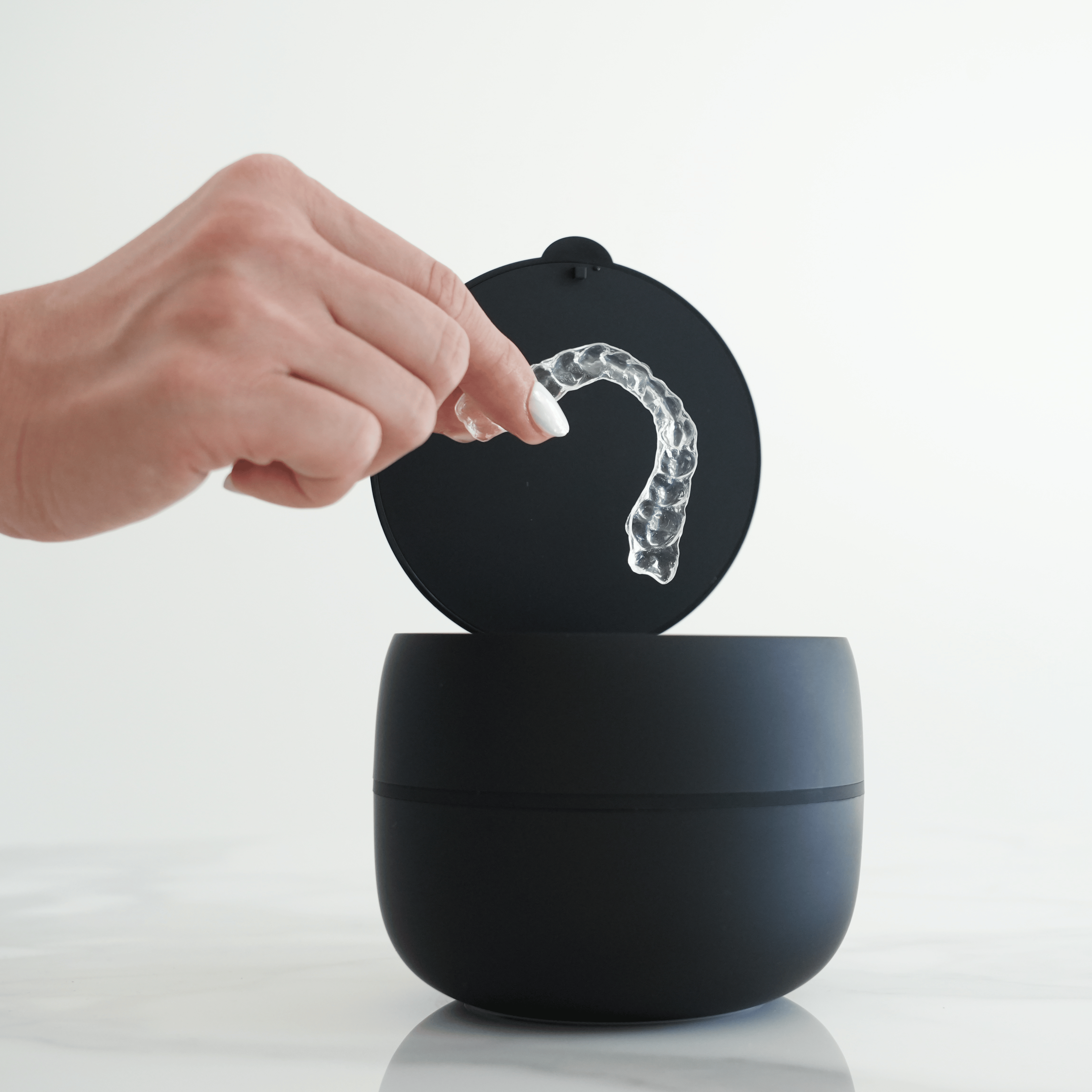Il dispositivo ON SONIC è stato progettato con precisione dai nostri esperti per pulire efficacemente una vasta gamma di dispositivi orali. È compatibile con tutti i tipi di aligner trasparenti, retainer (anche con parti metalliche), bite notturni, paradenti, dentiere, dispositivi per l'apnea notturna, testine dello spazzolino e molto altro ancora.